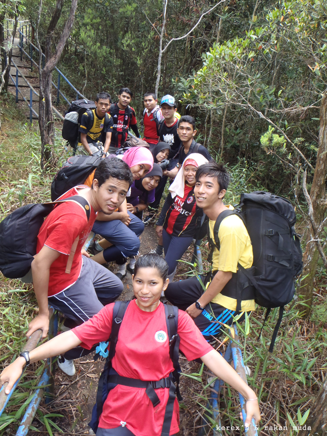 puas berjalan, akhirnya kami menjejak trek tangga kenari... namanya tangga kenari tapi tangga tu ada di bawah lagi.... bukan kat atas ni ok... dan kami masih di puncak gunung jerai...